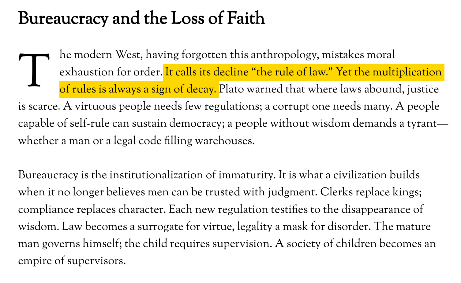 The Rule of the Incarnate: Why the West Was Never Meant to Be Governed by Law Alone